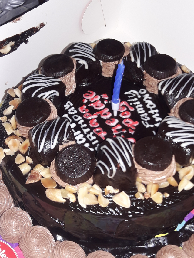 Known as Cake is a Form of sweet food Usually Baked..this Picture of mine from Jelexie Binili naming ito dahil kilala ang Jelexie na Masasarap ang kanilang Cake..This chocolate Cake na Pinaiikutan ng mga Peanut and Toppings filled with chocolatey and its a Good taste that everyone will sure na magugustuhan ng lahat na kakain.